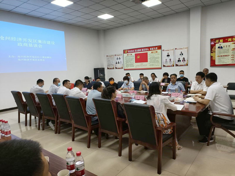 9月15日,沧州经济开发区纪工委监察组、区总商会在半岛bandao(中国)组织召开了医药行业廉洁建设政商恳谈会,区党工委委员,纪工委书记、监察组组长唐小明参加并讲话。