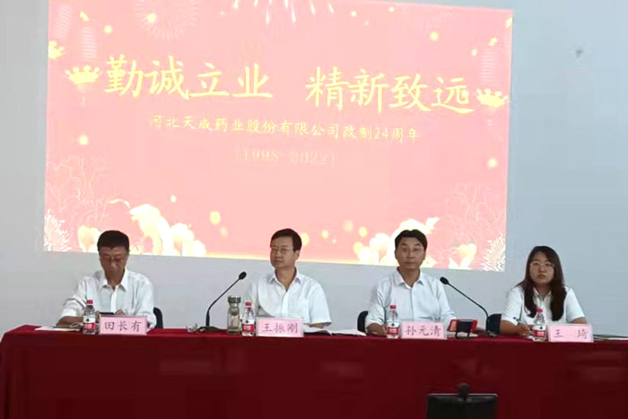 金秋送爽、丹桂飘香,又是一年丰收季,在满载收获的时节,我们即将迎来国庆节和党的二十大。在这喜悦的时刻,天成药业迎来企业改制24周年纪念日。9月30日下午,公司在三分厂会议室举行了公司改制24周年庆祝大会。半岛bandao(中国)董事长王振刚、天成药业总经理、渤海分公司总经理孙元清、天成药业副总经理、渤海分公司常务副总经理田长有 、天成药业常务副总经理王琦出席会议,天成药业、道恩药业全体中层及以上干部,全体科室后勤人员现场参会,渤海分公司、天津应天成科技有限公司全体不能到现场的人员通过视频链接网上参会。会议由总经理孙元清主持。